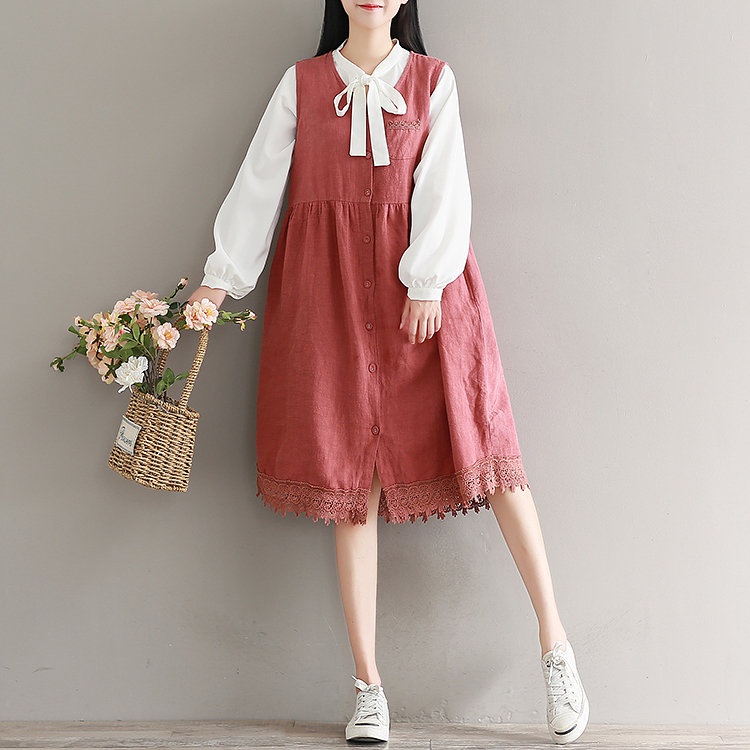 Vintage Lace Patchwork Sleeveless V-neck Women Dresses